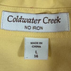 Coldwater Creek Womens Large Yellow No Iron 3/4 Sleeve Button Front Blouse Top