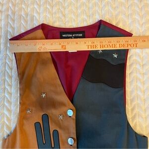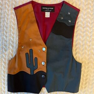 Vintage Womens Lilia Smitty Western Wear Cotton Studded Vest Medium Elastic back, Cowboy Texan, Cactus, Southern cowgirl Colorful