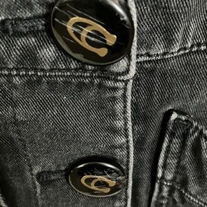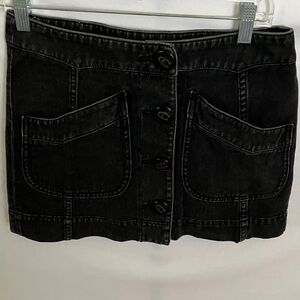 Coach: Black Denim Button Front Mini Skirt- pockets-100% cotton- 2