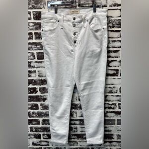 Chic high-rise, button fly, skinny crop jeans from Madewell. Crisp white color. Perfect for a modern look.