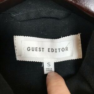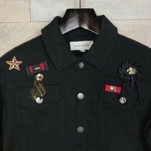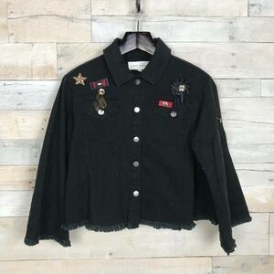 Anthropologie Guest Editor Womens Military Jacket Black Button Stretch Ruffles Swing Crop raw edge small
