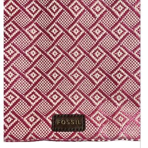 Fossil Purse Geometric Textile Pink White Straw Leather Trim Crossbody Bag