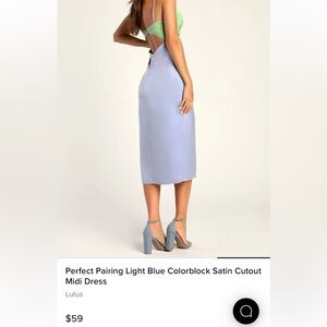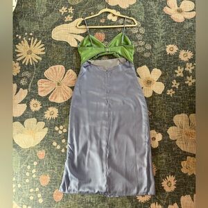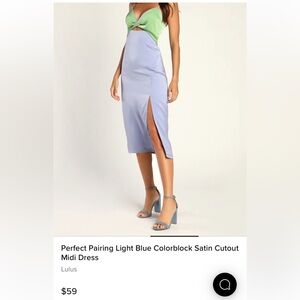 Stylish midi dress by Lulu's. Features a vibrant green top with a sleek periwinkle skirt. Perfect for any occasion. Worn once for a summer wedding. Will dry clean prior to sending. :)
