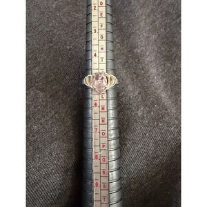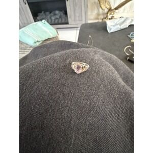 This vintage sterling silver size 5 amethyst heart ring is a charming and elegant piece of fine jewelry. The ring features a beautiful heart-shaped amethyst stone set in 925 sterling silver. The deep purple color of the amethyst complements the sleek silver metal, creating a timeless and classy look. Perfect for any occasion, this ring is a lovely addition to any jewelry collection.