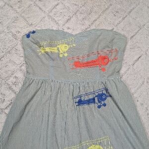 Moulinette Soeurs Dress Womens 10 Blue Stripe Airplane Embroidered Festival Fair