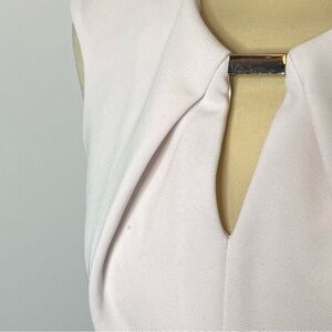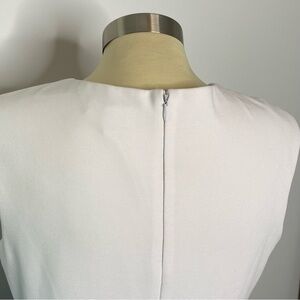 Liz Claiborne color block sheath dress. Soft white top with silver accent and neckline pleats. Aqua teal band to accent waistline and navy blue skirt. Hidden center back zipper. Worn once, dress is very flattering!