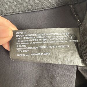 Pre-owned in great condition. Theory Thaniel in in Kenett Black color. Size womens 8. 27in inseam. Please check pictures for approx. measurements.