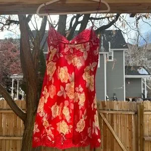 Victoria’s Secret Floral Lace Red négligée Slip lingerie Chemise Medium