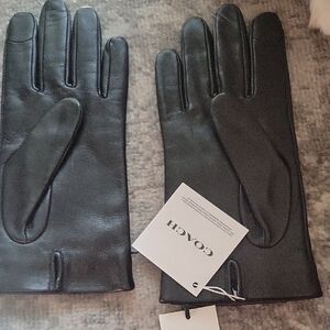 Sleek black leather tech gloves by Coach. Tag shows "M" for size but I think they are better described as small/petite fit. Ideal for that classy, sophisticated touch.