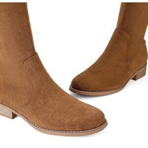 🆕Women's Brown Over The Knee Boots Thigh High Low Block Heel Pointed Toe Boots