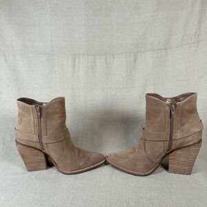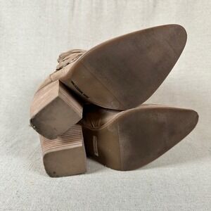 Gianni Bini Tan Suede Fringe Wedge Ankle Boots Pointed western cowgirl cowboy