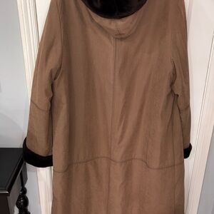 Utex Elegant brown coat with black trim, perfect for any occasion. Stay warm and stylish.