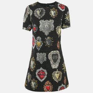 Dolce & Gabbana Black Crest Printed Cotton Jacquard Mini Dress M