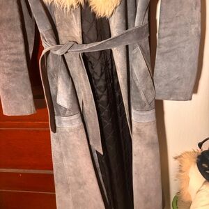 GORGEOUS vintage 60s/70s suede and shearling belted penny lane coat. beautiful great color with thick and plush collar. has a tie belt. brand is georges besson. no flaws! fits like an xs-s. beautiful detailing