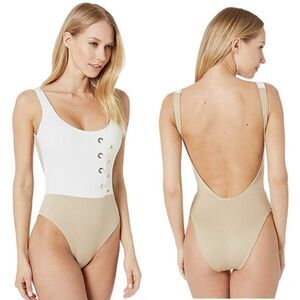 Derek Lam 10 Crosby Khaki Rib Knit Swimsuit One Piece