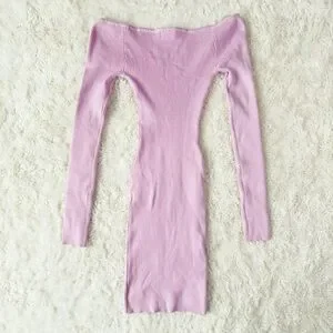 Lovers and Friends Lavender Ribbed Knit Off-Shoulder Mini Dress SMALL Bodycon