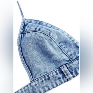 Stylish denim blue tie back crop top with a chic halter design. Perfect for casual outings. New with tags, Size XS