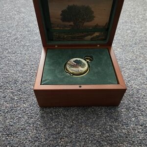 Elegant gold pocket watch featuring a detailed tree design. Perfect for adding a touch of vintage charm.