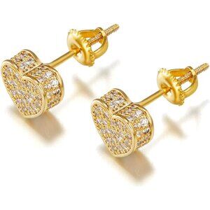 18k Gold Plated Heart Stud Earring For Women Earring Screw Back Iced Out Cubic Z