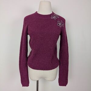 J. Crew Pink Knit Crew Neck Ribbed Long Sleeve Asymmetrical Beaded Shoulder