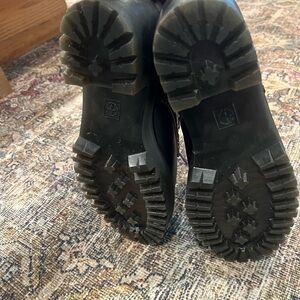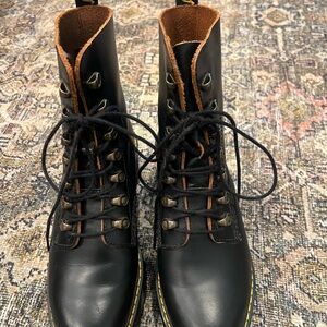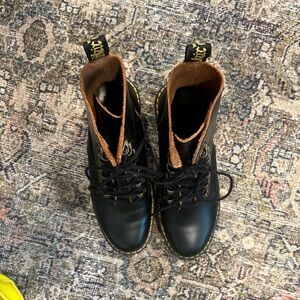 Classic Dr. Martens boots featuring a statement platform rubber heel with their classic yellow stitching.
