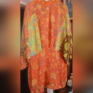 Elevate your loungewear with the Boteh Multicolor Floral Kimono Robe. This vibrant piece features a stunning mix of orange, green, and pink hues, perfect for adding a splash of color to your relaxation time.