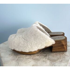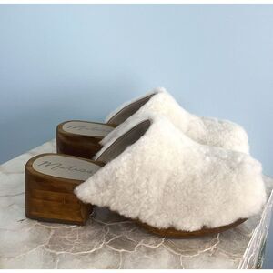Matisse Cream Fuzzy Mules with Wooden Heel