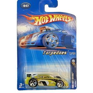 The 2005 Hot Wheels #47 First Editions Torpedoes Slider in Lime color with 5 Spoke Wheels is a die-cast metal toy car in 1:64 scale. It is part of the Hot Wheels 2005 First Editions series, featuring a unique model called Slider with chrome 5 spoke wheels variation. This collectible toy car is suitable for children aged 3 and up, and is a great addition to any boy or girl's toy car collection. Made in Malaysia, this Hot Wheels car is unopened and comes in its original box.