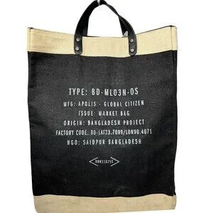 Apolis Jute Market Bag Tall Black Hamilton Bermuda Leather Handles