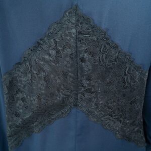 - Black lined lace panel accents