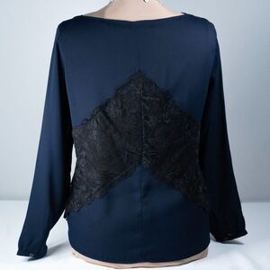 LOFT Forever Navy Black Lace Paneled Blouse
