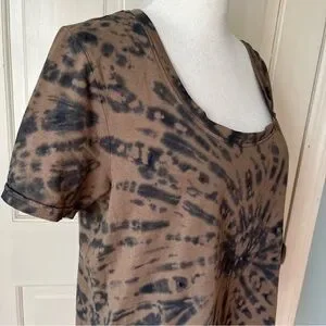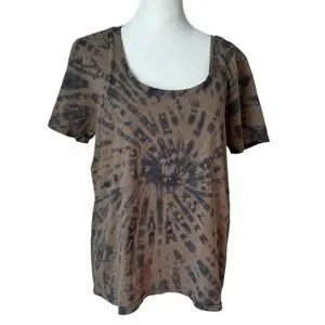 Pact Organic Cotton Husk Spiral Tie Dye Tee Shirt Small Brown Hippie Boho Artsy