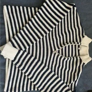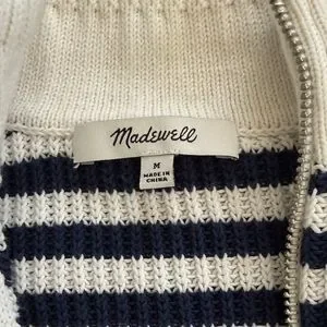 Madewell Navy and White Striped Quarter zip 100% Cotton Sweater