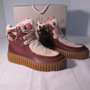 Sam Edelman Reve Fay Platform Boot Brown Patchwork 7.5M NIB