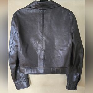 Elevate your style with this sleek black leather jacket. Perfect for any occasion, it offers both comfort and sophistication.