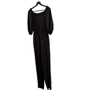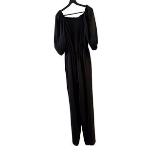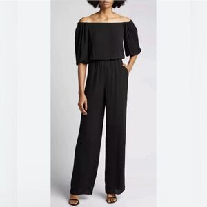 THEORY Classic Georgette Silk Off the Shoulder Black Jumpsuit Size P (00-0)