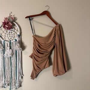 Revolve Majorelle Dani Bodysuit One Shoulder in Toffee Nude Size Small