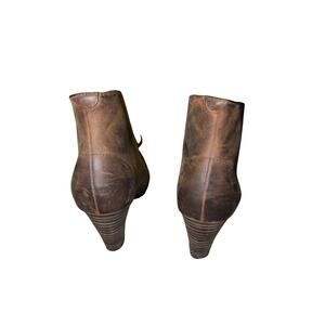 Clarks Indigo Leather Booties Brown Women’s Size 5.5 Wood Heel Good Condition