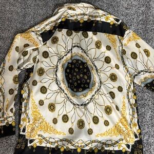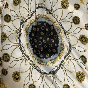 Zara Woman Ecru Chain Scarf Print Button Down Blouse Size Small