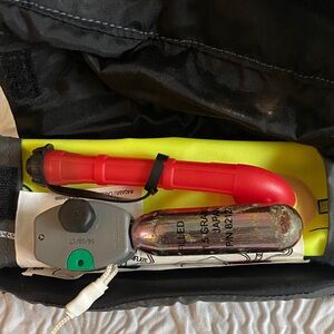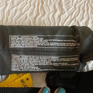 Sleek Onyx M-16 belt pack. Ideal for convenience and style. This is a “life vest“ alternative. Worn around the waist while paddle boarding, this low profile design is number one choice for racers. To inflate, pull the yellow hanging tab. Never been used! The inside cylinder has slight corrosion from being outside in salty air. Once opened, the unit is reusable, just filled up into itself and replaced the cylinder.