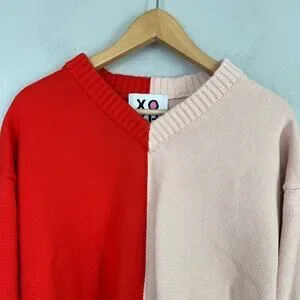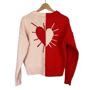 Kerri Rosenthal XOKR Sweater Red Pink Radiant Heart V-Neck Valentine's Size XS