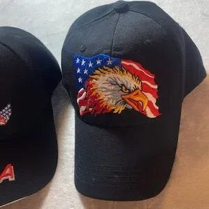the VFW hat and the bald eagle hat