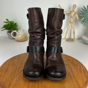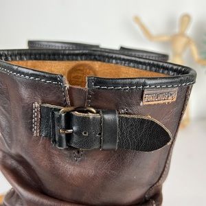 Pikolinos Brown Leather Moto Strap Heeled Boots Women’s Size 6