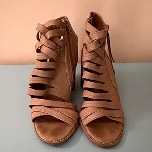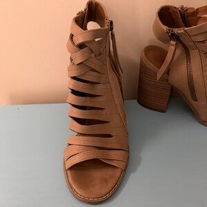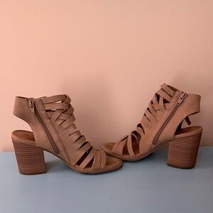 Step out in style with these chic tan block heel sandals. Perfect for any occasion, these shoes offer both comfort and elegance.
