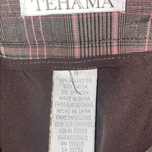 Checkered mini skort in brown and pink tones from TEHAMA. Ideal for casual outings.