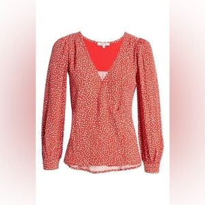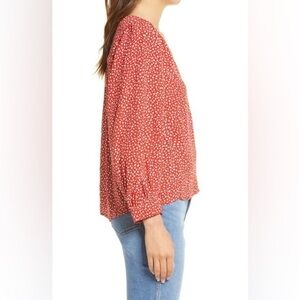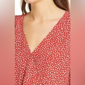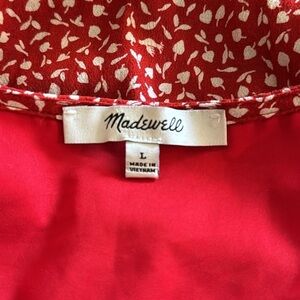 Large Red and white v neck blouse madewell cottagecore side button wrap shirt