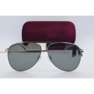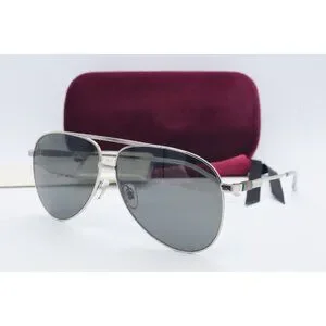 Gucci GG G1098S 004 Aviator Silver Sunglasses Gray Lenses 62mm