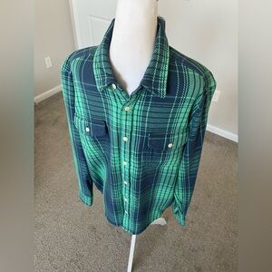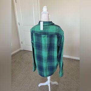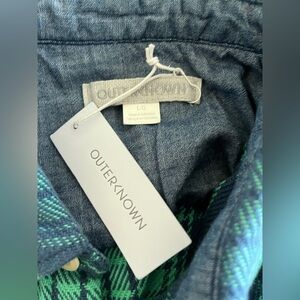 NWT OuterKnown Organic Cotton Mens Buttondown Shirt Size Large in Blue and Green. Beyond soft and excellently made.