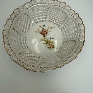 Vintage Floral Reticulated Basket Weave Trinket Dish/Bowl