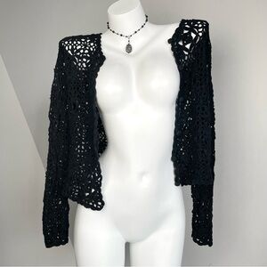 black lace top, whimsygoth, black cardigan, crochet cardigan, see through top